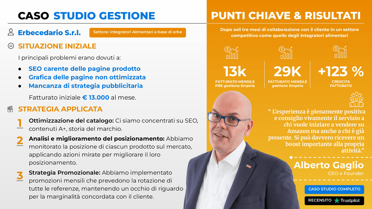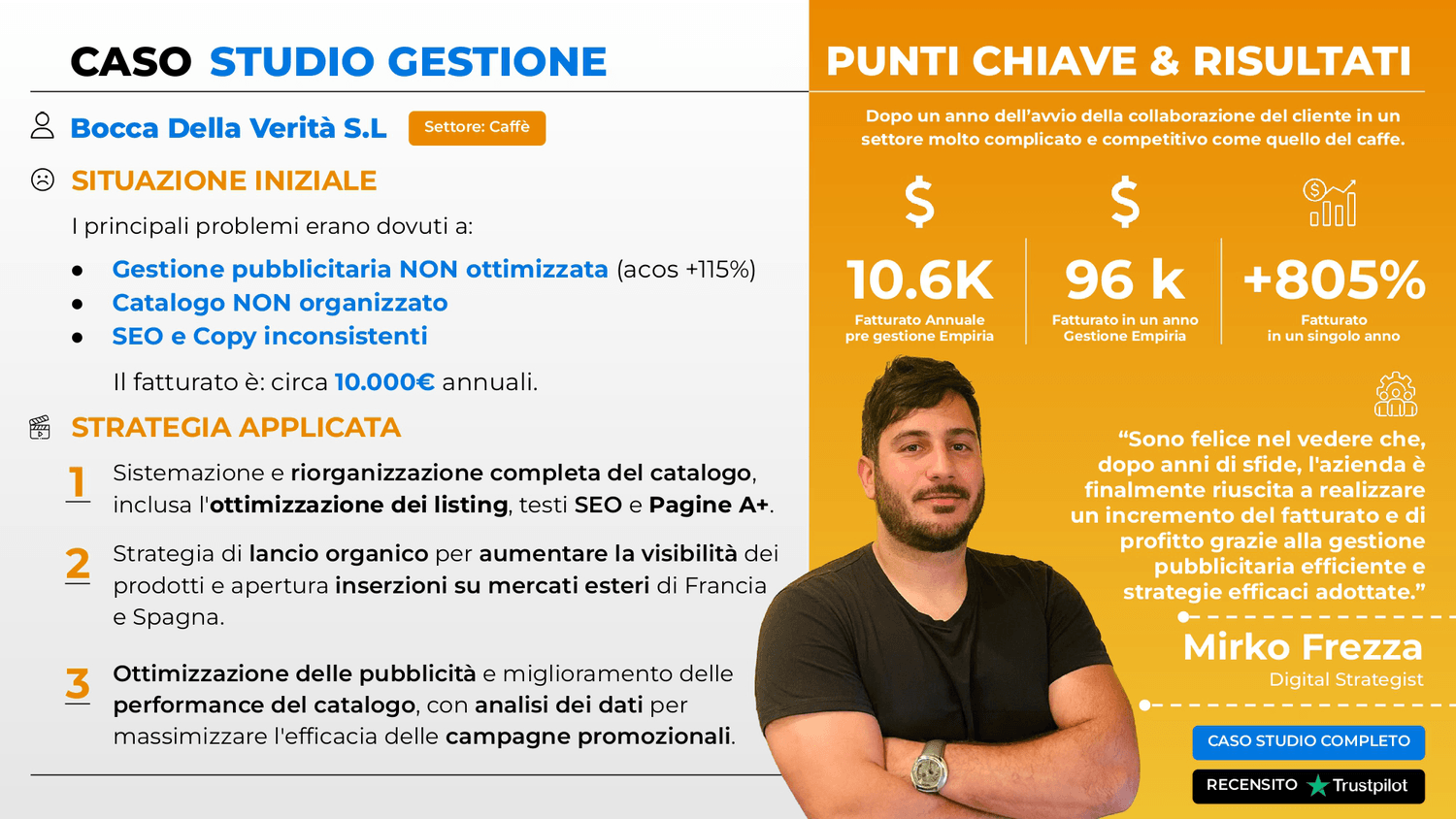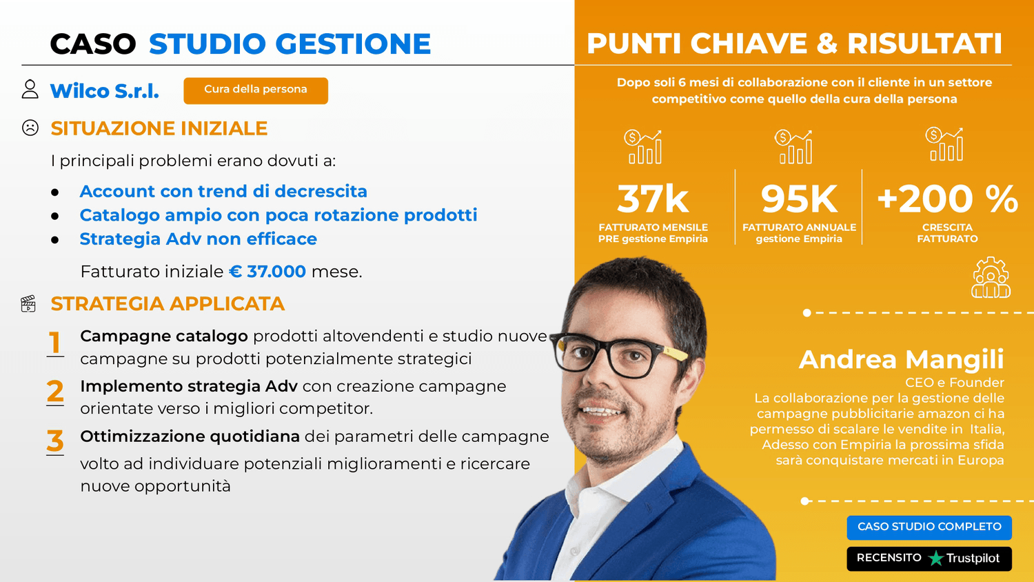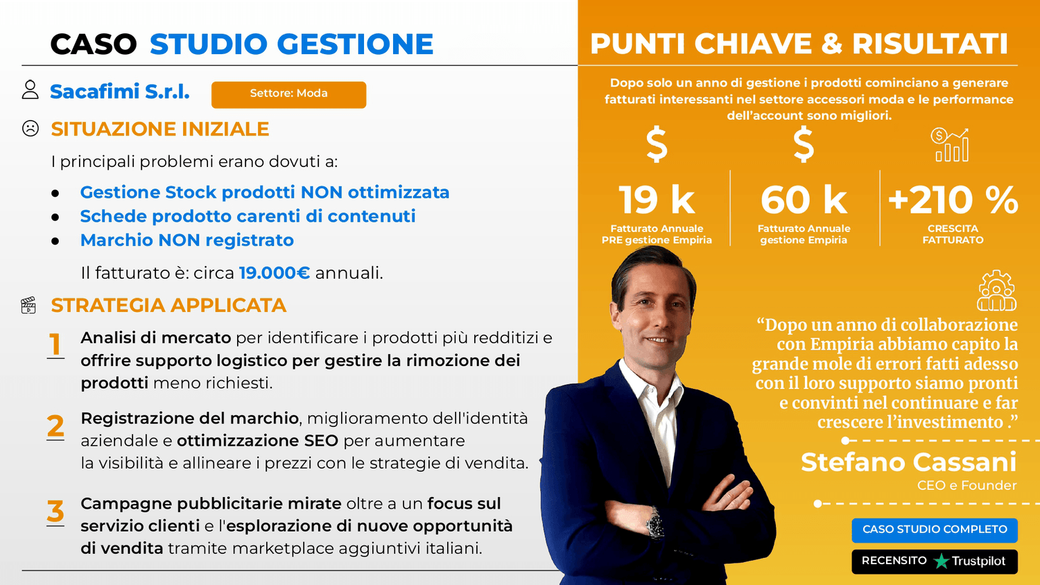 Da allora, abbiamo perfezionato questo sistema aiutando oltre 300 imprenditori a superare il plateau e scalare fino a milioni di euro di fatturato su Amazon.